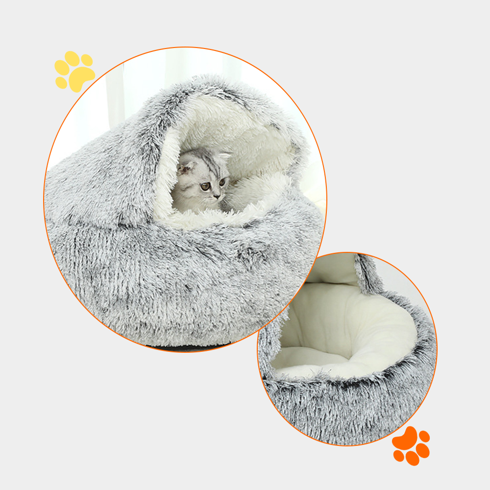 مصنوع من قماش ناعم وقطيفة طويلة، هذا السرير يخلق مساحة هادئة حيث يمكن لحيوانك الأليف الاسترخاء والشعور بالأمان.