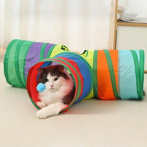 The collapsible design makes it easy to store when not in use, and its portable nature allows you to bring it along for trips or outdoor play. A cat tunnel tube is an excellent way to keep your feline friend entertained and active, making it a delightful addition to any cat's playtime routine.