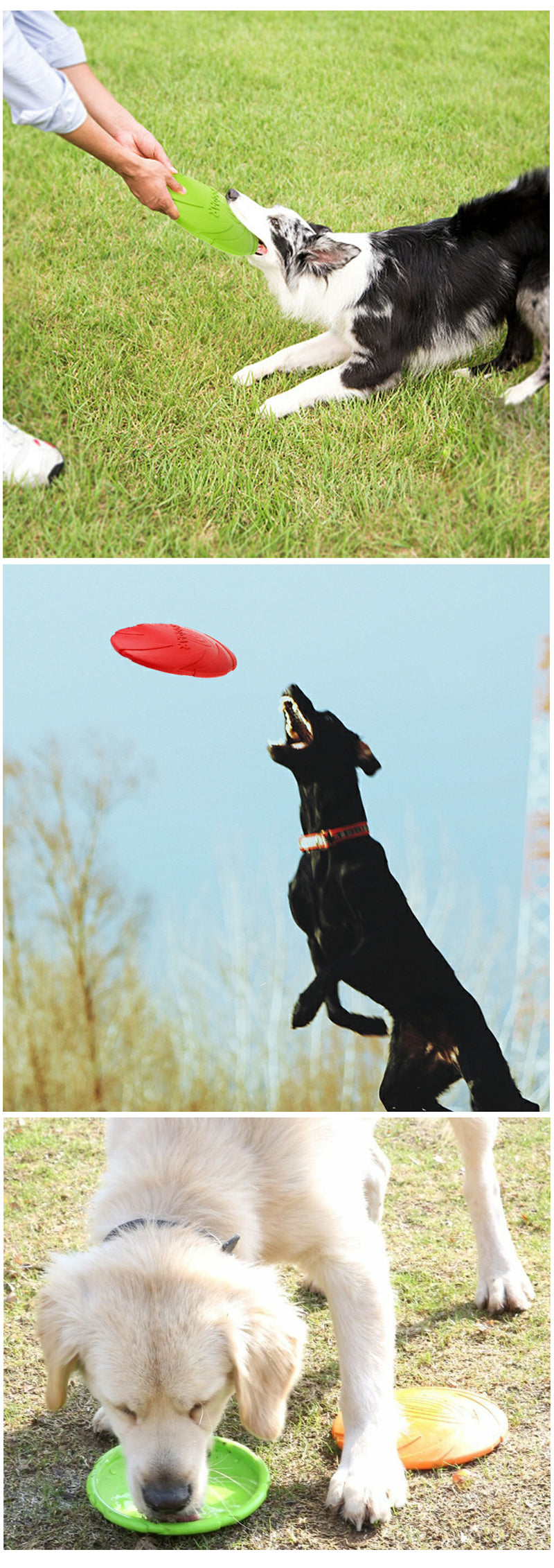 Introducing the Pet Frisbee, a must-have interactive toy for your furry friend. Made with soft and safe materials, this frisbee is toxin-free and built to withstand your pet's chewing. It is designed to accompany your dog during their growth and provide them with a fun and engaging outdoor experience.
